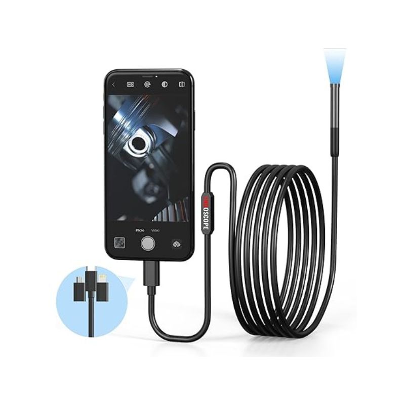 1080P HD Resolutio This borescope with 0.3IN probe compact structure, small and portable. can inspect hard-to-reach places effortlessly. The HD camera can observe clear image(2M(1080P)and videos(720P) 9.8FT Semi-Rigid Cable & IP67 Waterproof :Snake Cable can unrolls and rolls up quickly which Making work easier. Sealed with special glue, anti-corrosion and wear-resistant, allowing this endoscope inspection camera to easily face the poorly underwater environment. Wide compatibility: Equipped with three model ports (Type-C, Micro-USB, Lighting) can easily connect with( Android 4.4+, iOS 9.0+ and above )systems. To complete the link, search for “ANESOK” in the APP store or download the APP by scanning the QR code on the instructions