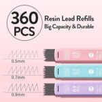 Exquisite Set: You will get a cute mechanical pencil set, consists of 2 each of 0.5 mm, 0.7 mm, and 0.9 mm mechanical pencils, 6 tubes of lead refills(0.5, 0.7, 0.9 mm), 3pcs erasers and 9pcs eraser refills Triangular Grip: The triangular grip design of the mechanical pencil can guide the comfortable holding posture and avoid slipping; And the smooth barrel and light weight provides relaxing and efficient writing experience 360pcs Upgraded Resin Lead: The pencil lead is made of resin and graphite which is stronger, elastic and smooth; 6 tubes of lead refill, 360pcs in total, enable you to use for a long time Three types of Nibs: The set contains three types of nibs, 0.5 mm, 0.7 mm and 0.9 mm, that allows you switch as needed; Cute mechanical pencils are good for writing, painting, drafting, drawing, sketching, etc
