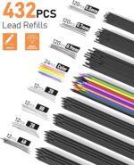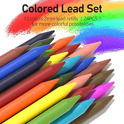Includes 3pcs metal drafting mechanical pencils (0.5, 0.7, 0.9mm), 3pcs 2.0 mm lead pencils, 6 tubes of 0.5, 0.7, and 0.9mm graphite lead refills (60pcs/tube, HB), 4 tubes 2.0mm (4B, 2B, HB, 2H, 12pcs/tube) graphite lead refills, 2 tubes 12 color lead refills, 2pcs 4B soft erasers, a kneaded eraser, 2pcs lead sharpener, 9pcs cap eraser refills, a plastic mechanical pencil case. The set has appropriate hardness & smooth lead refill for your daily art writing and drafting. 360PCS black HB lead refill 0.5 & 0.7 & 0.9 mm. 48 PCS 2mm of different hardness( 2B HB 2H 4B)&24PCS 12 assorted colors graphite lead refills lead refills for art shading Optimal weight and Rhombus textured rubber grips and metal grips with an anti-slip texture. the metal pencil boasts a fully metal body design to ensure a secure and comfortable grip while writing or drawing, without causing fatigue. Includes a kneaded eraser and a sharpener built into the cap of a 2.0mm lead holder, Two extra lead sharpeners are provided for 2.0mm leads to keep them fine when they become dull. The kneaded eraser is ideal for cleaning and blending charcoal, pencils in drawings.