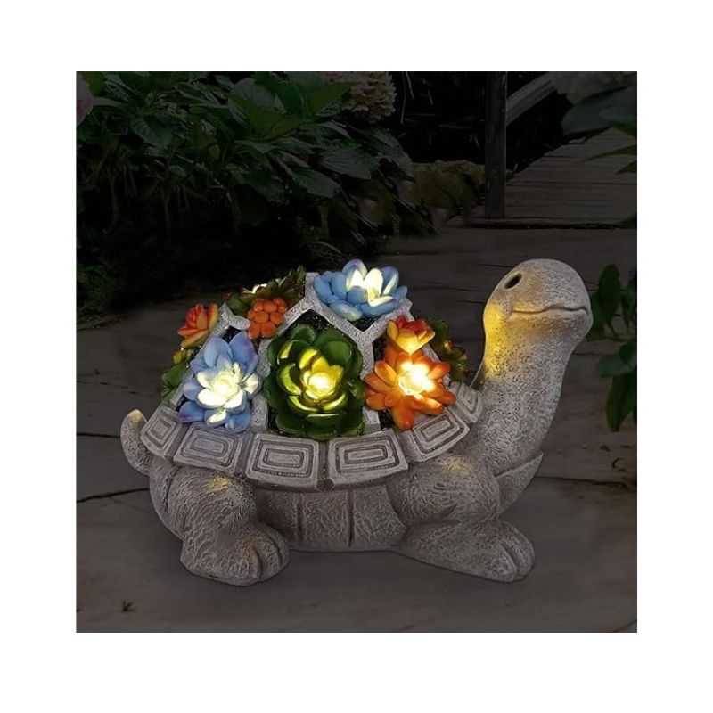 Nacome Solar Garden Outdoor Statues Turtle with Succulent and 7 LED Lights