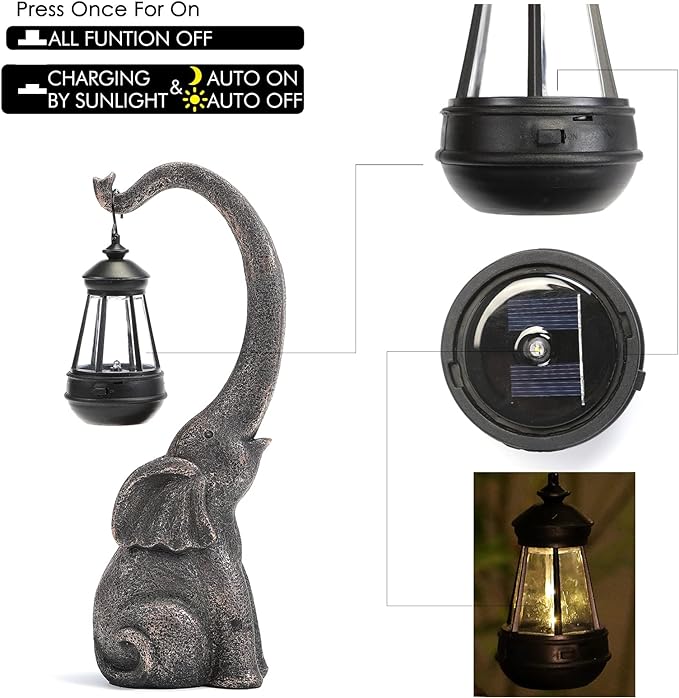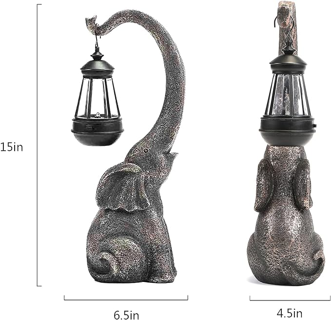 The Christmas Gift elephant statues makes a unique decoration statement in your garden, patio or interior. The style is East Asian with truck up the symbolized good luck in many cultures. This friendly elephant statue is a natural grey tone with happy face.The warm white light will make your yard more warm, so that you can illuminate your keyhole and illuminate your way home; IVCOOLE elephant will wait for you to go home every day The solar elephant light decor comes with a solar powered light for outdoor lighting. The automatic solar powered light has a solar panel that absorbs sun light during the day to convert sunlight into electricity to recharge the AA Ni-MH battery (included). Solar power lights automatically turn on at night and turn off at dawn. IVCOOLE elephant carries all the good blessings, hoping that our elephant can add more fun to your Christmas. Please send this sincerely blessing to your friends, family, teacher, classmate, bless them health, lucky, happy.A good chioce forChristmas gifts. Wide application: It can be a pathway light to be widely used such as pathway, driveway, flower beds, lawn, yard, patio, garden, balcony and so on. This elephant gifts also can be used as porch decor and even indoor decor where it could get sunshine during the day.